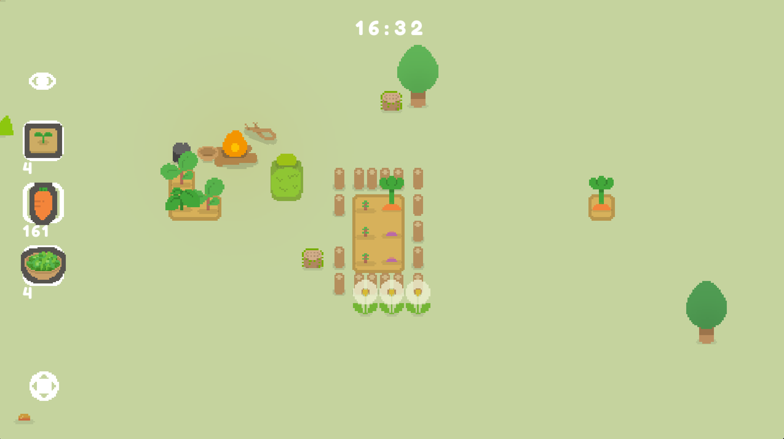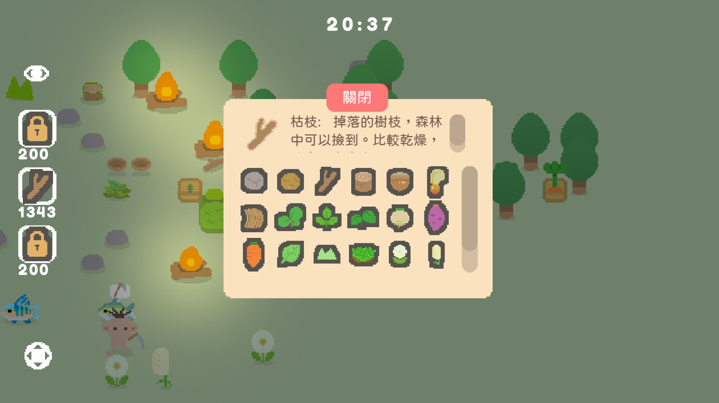 這是一款放置型種菜遊戲,遊戲會隨著真實時間作息走。可以建造基地、種菜、釣魚,好讓小人活得更久,畢竟一開始他只有五天的時間,想辦法延長他的壽命,是遊戲的主要目標!
